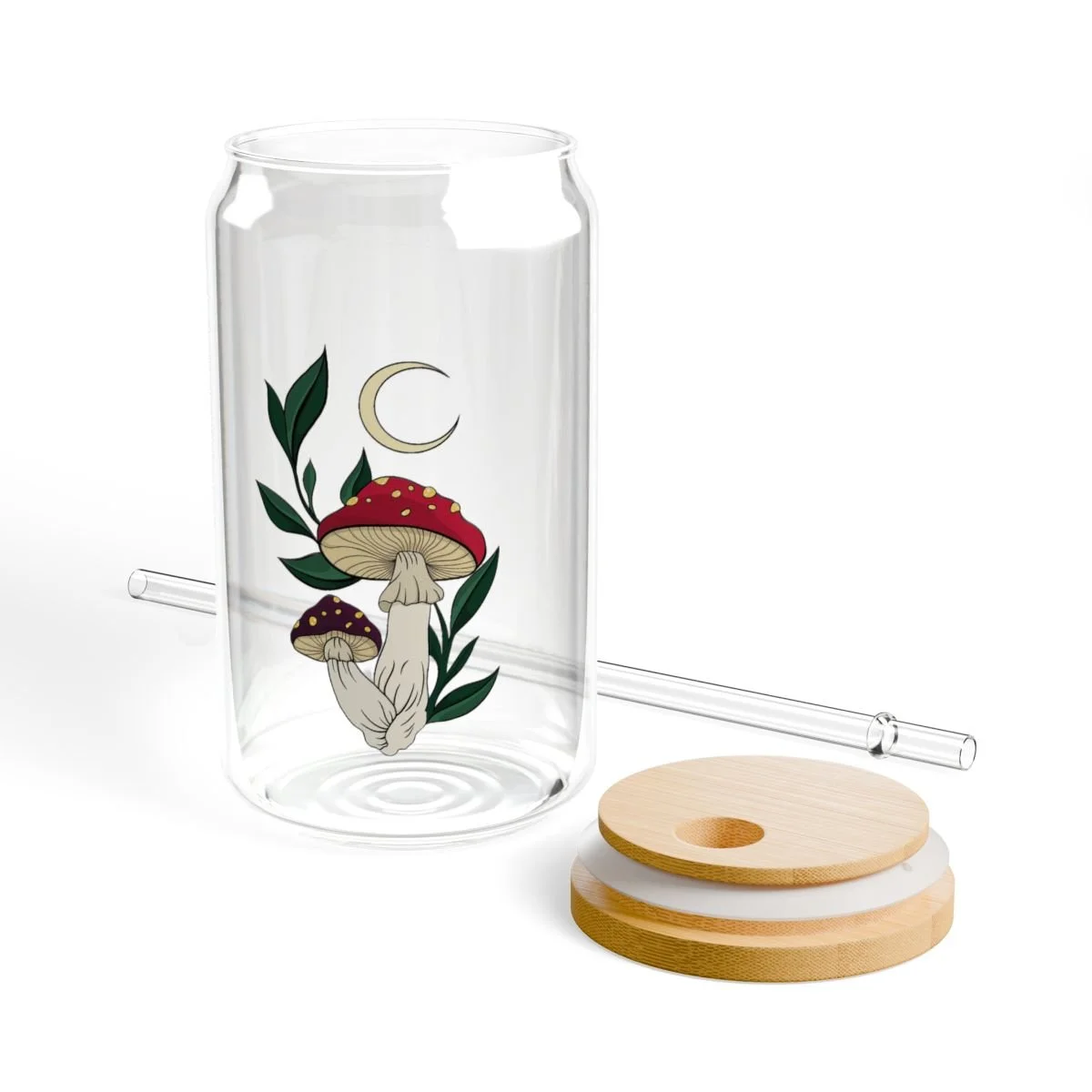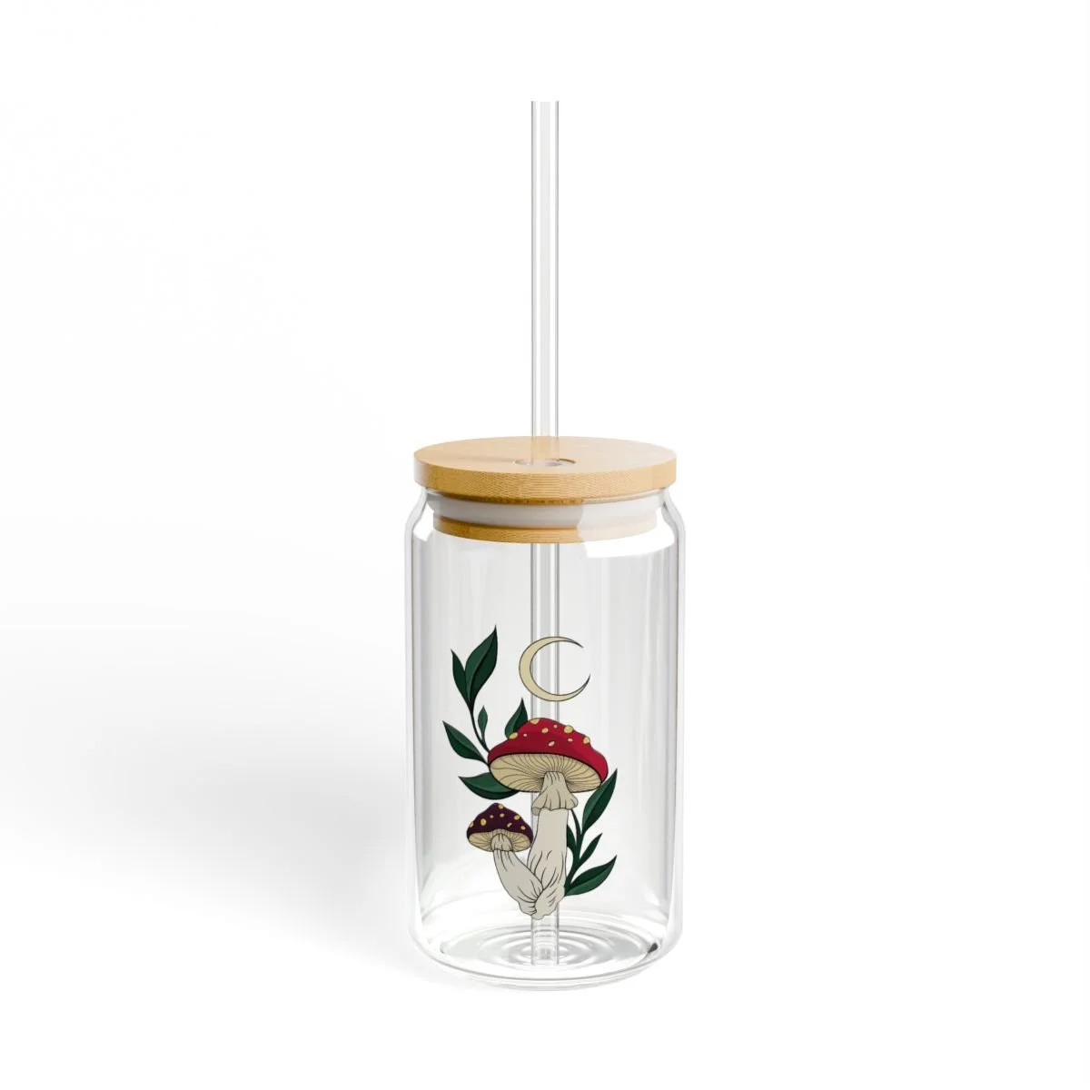 Quench your thirst in style with this beautiful mushroom 16oz Sipper Glass. Made from clear tempered glass; it's durable, sleek, and perfect for refreshing cocktails, juices, or any beverage you fancy. Choose between the classic version or opt for the version equipped with a Gasket-push Bamboo lid and Tritan plastic straw for added convenience. This sipper glass is FDA Certified, BPA Free, and Cal. Prop 65 compliant, ensuring your safety and peace of mind with every sip.